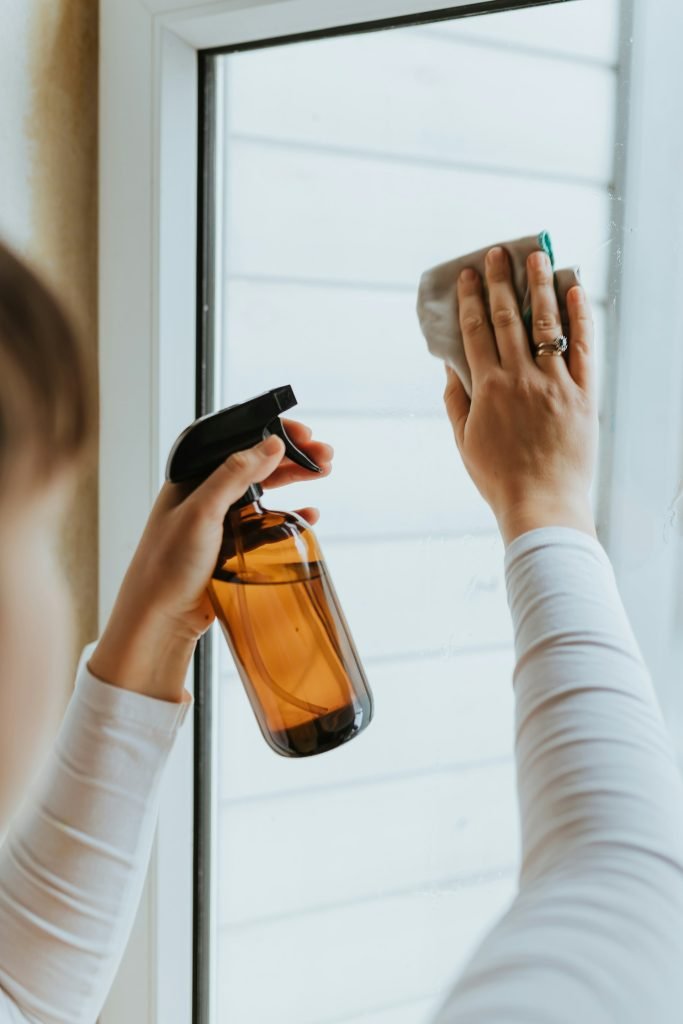 Collect all the cleaning supplies you’ll need before you start. This saves you time by reducing back-and-forth trips to gather items.